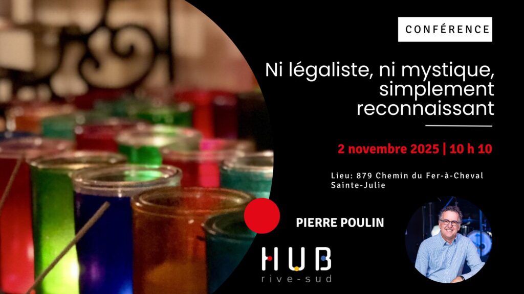 Participez à des événements qui illuminent des vies Rencontres publiques du dimanche Rencontres des groupes spécifiques Rencontres publiques de semaine vendredi 17 octobre Rencontre jeunesse Conférencier : mathieu boivin 879, Chemin du Fer-à-Cheval, Sainte-Julie, (QC) J3E 1X5 dimanche 19 octobre Rencontre du dimanche conférencier : Philippe Joret 879, Chemin du Fer-à-Cheval, Sainte-Julie, (QC) J3E 1X5 Écouter en ligne dimanche 19 octobre Groupe Alpha Jeunesse Conférencier : MATHIEU bOIVIN 879, Chemin du Fer-à-Cheval, Sainte-Julie, (QC) J3E 1X5 mercredi 22 octobre Apprentis du chemin 879, Chemin du Fer-à-Cheval, Sainte-Julie, (QC) J3E 1X5 dimanche 26 octobre Dimanche de relâche dimanche 2 novembre Rencontre du dimanche conférencier : PIERRE POULIN 879, Chemin du Fer-à-Cheval, Sainte-Julie, (QC) J3E 1X5 Écouter en ligne mercredi 5 novembre Apprentis du chemin 879, Chemin du Fer-à-Cheval, Sainte-Julie, (QC) J3E 1X5